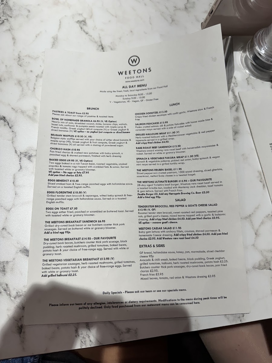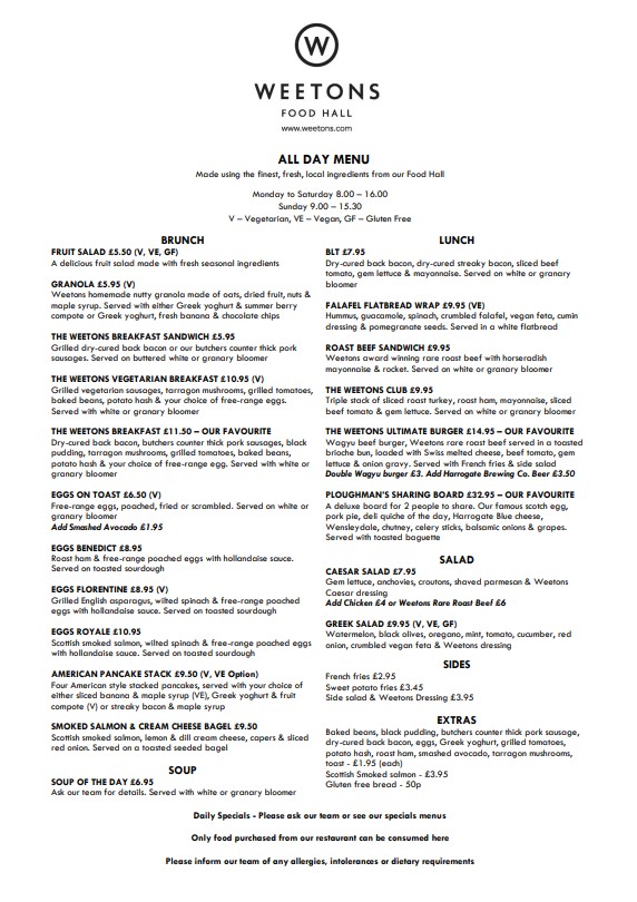In conclusion, Weetons West Park not only excels in offering a diverse and high-quality menu, but it also stands out for its excellent service and welcoming atmosphere. Whether you're visiting for a quick bite or a leisurely meal, it's a fantastic spot that promises to exceed your expectations. The combination of great food and a charming setting makes it a must-visit destination in Harrogate.